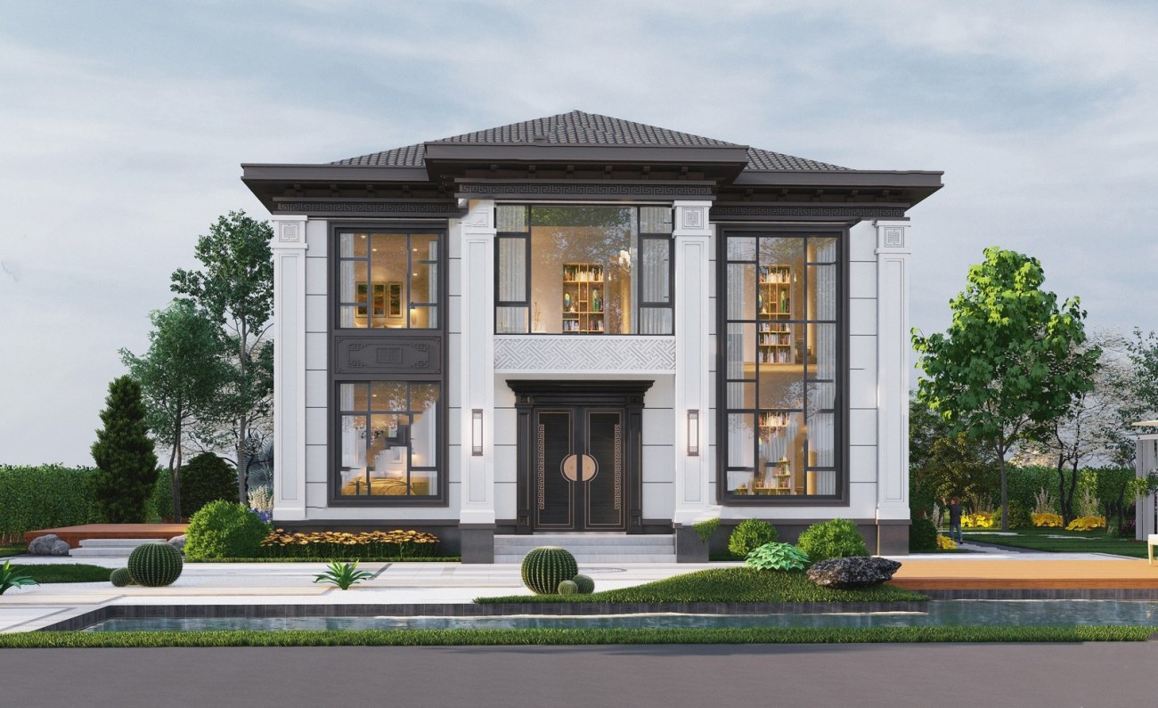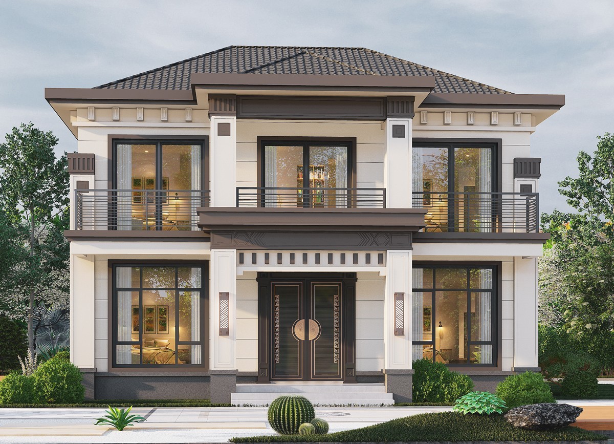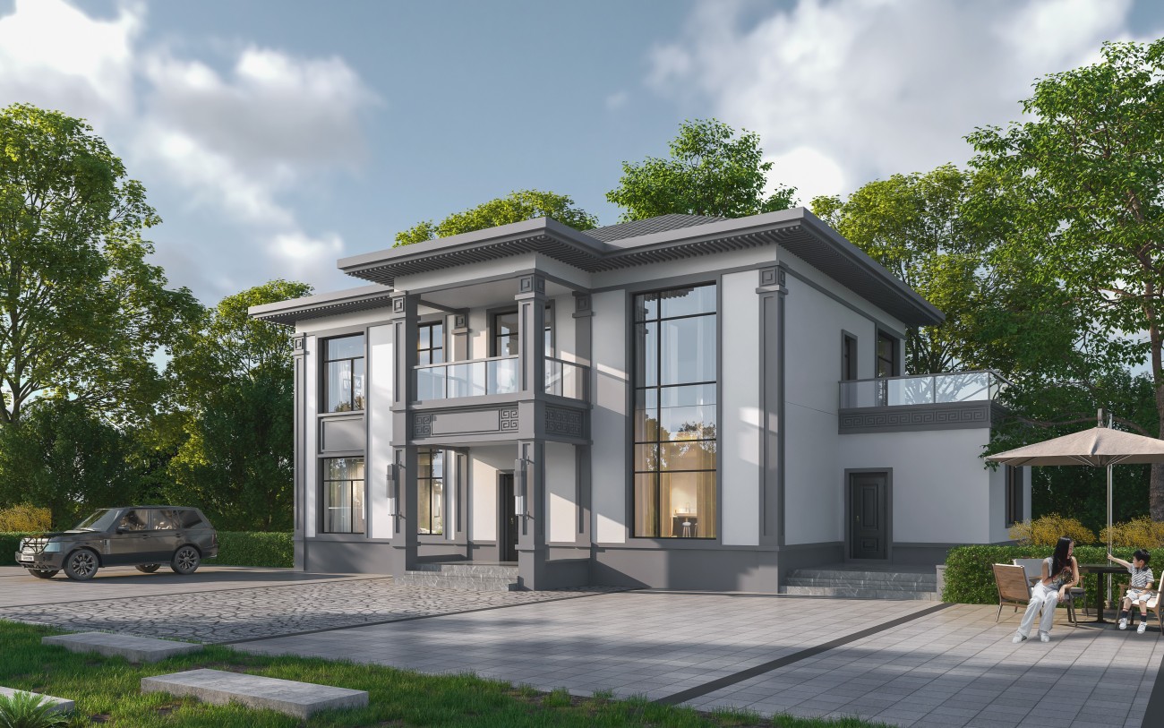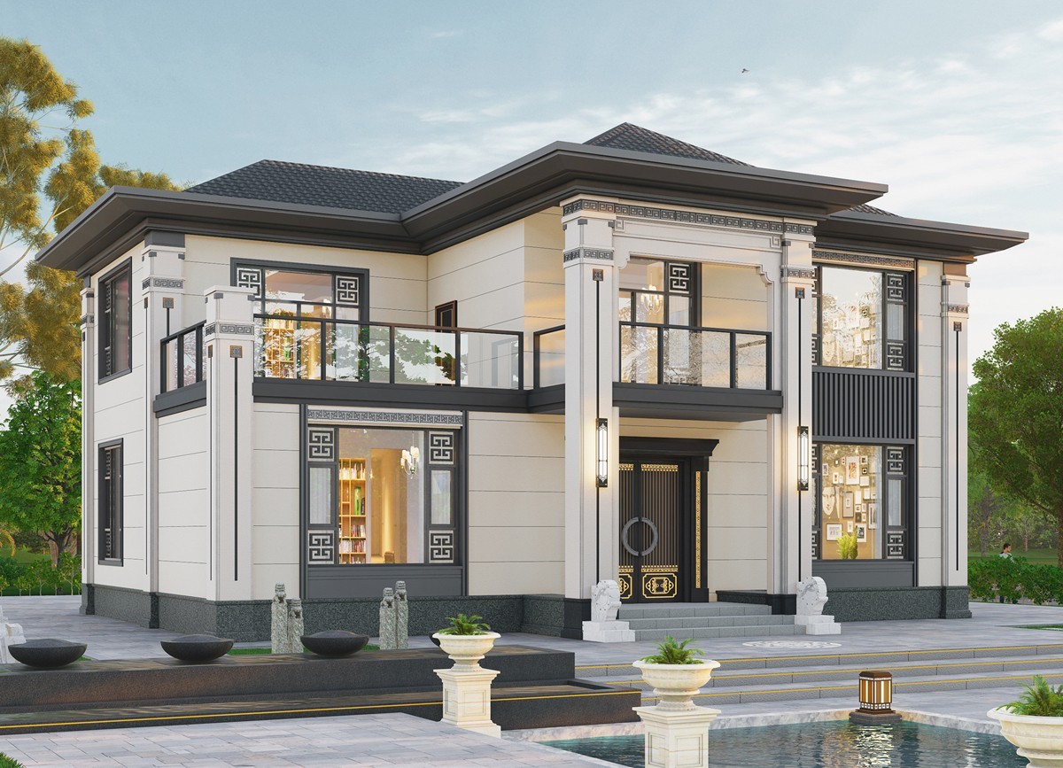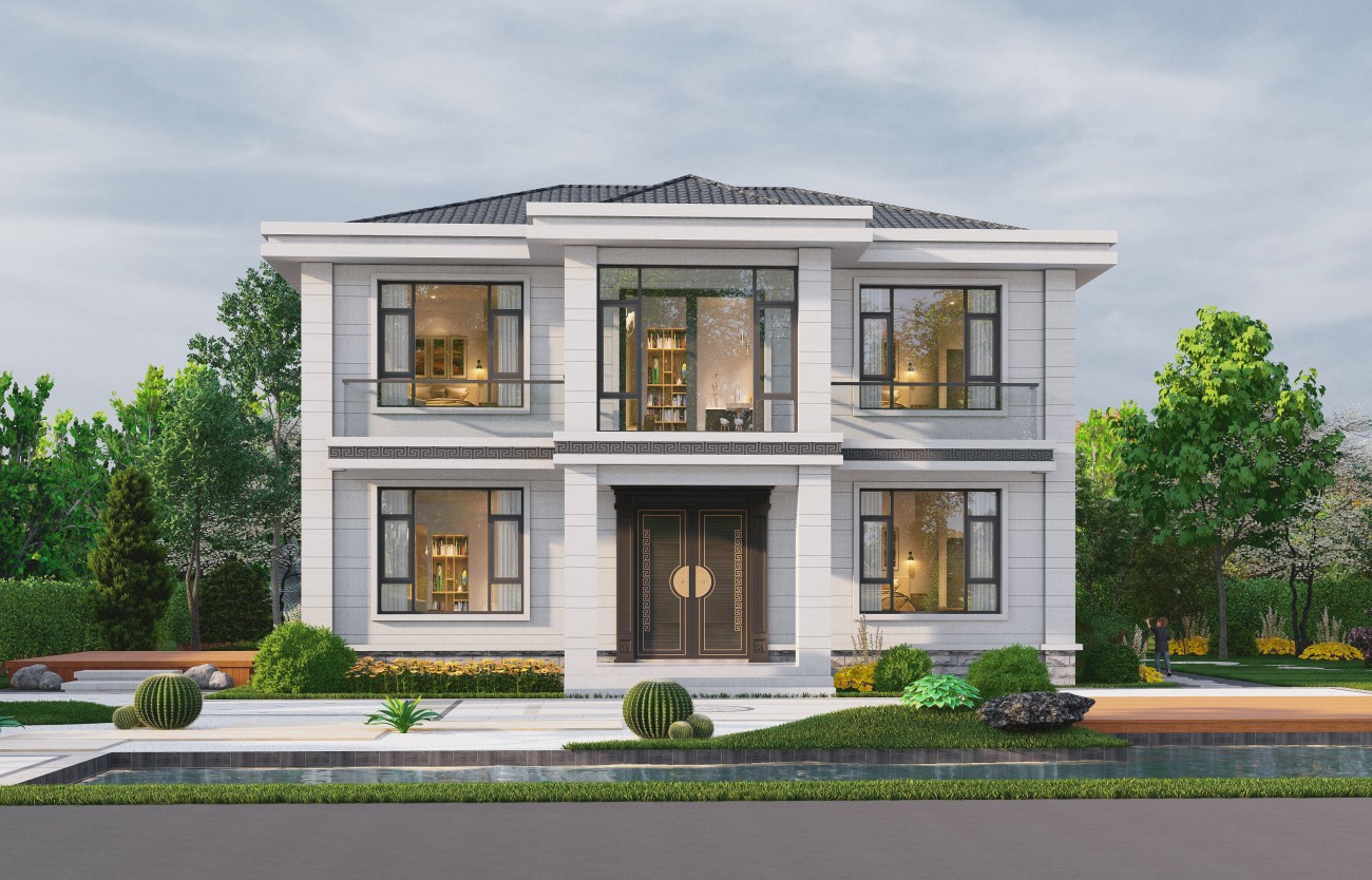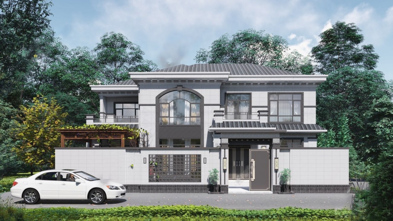 菏泽005 两层新中式(11.36x11.76米)-【易设计】