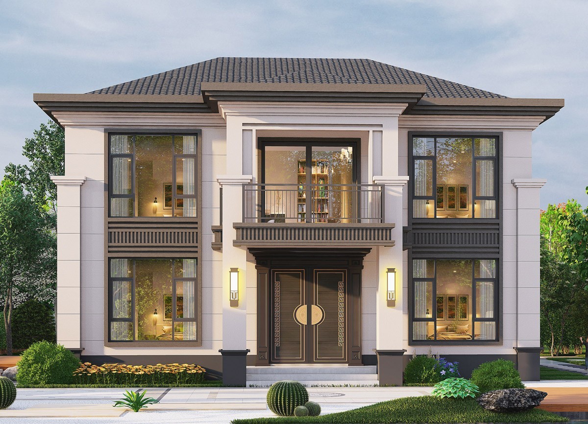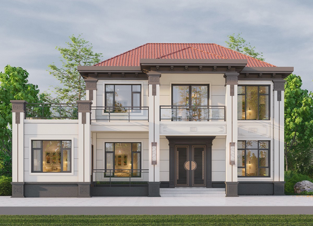 菏泽005 两层新中式(11.36x11.76米)-【易设计】